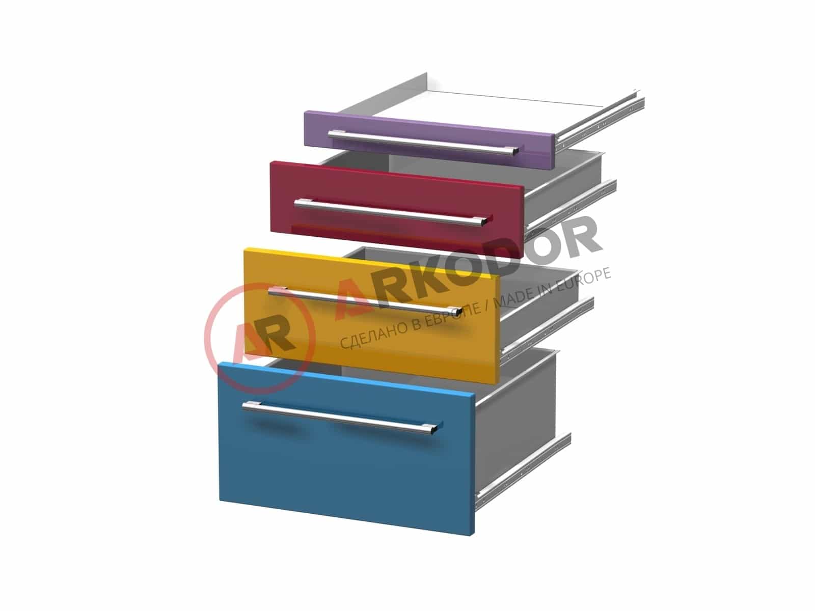 Роликовые направляющие BLUM – хорошо зарекомендовавшая себя технология роликовых направляющих, обеспечивающая длительный срок службы ящиков. Частичное выдвижение. Динамическая нагрузка – 25 кг.